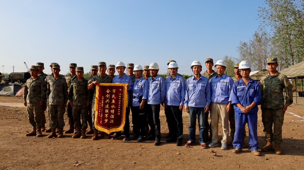 中國人民解放軍某部隊將一面寫有"軍民魚水情誼深 合創(chuàng)共建強軍夢"的錦旗送到湖北合創(chuàng)重工有限公司,感謝湖北合創(chuàng)重工為駐訓部隊在訓練用地、官兵生活等方面給予的大力支持和幫助,切切實實為駐訓部隊排憂解難。